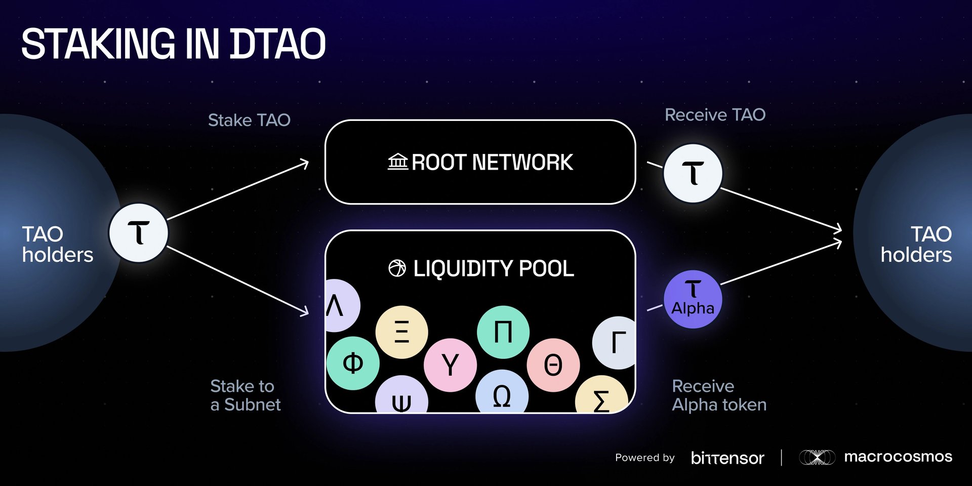 Staked TAO (Root) refers to staking the native token TAO within the root layer of the Bittensor network, where returns are derived from emissions generated across multiple subnets. These emissions are distributed in the form of subnet tokens (“alpha”), a portion of which is allocated to root stakers based on a defined root proportion. Traditionally, these rewards are automatically converted into TAO and added back to the staked balance, a process known as “root claim.” Following updates introduced in 2025, reward distribution occurs at random intervals, typically every 1 to 2 days, rather than at fixed, short intervals. The updated model offers an alternative, the “alpha claim,” in which earned rewards are retained as subnet-specific tokens rather than converted to TAO. Under this approach, stakers accumulate small amounts of alpha across the subnets their validator participates in, while their original root stake remains unchanged. A hybrid option also exists, allowing selective conversion of some subnet rewards while retaining others as alpha. Root staking is generally structured to preserve the underlying TAO value, while the treatment of rewards determines whether returns remain in TAO or are exposed to subnet-level variability. [2]