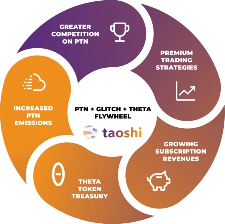 Theta’s design supports a self-sustaining growth mechanism known as the Theta Flywheel Effect. Competition among miners enhances the quality of trading signals and strategies within PTN, driving demand for Theta. Validators who hold Theta gain access to advanced, data-driven trading tools, while a portion of Glitch Financial’s revenue is used to buy back and allocate Theta tokens to a DAO for further ecosystem development. This continuous cycle of participation, innovation, and reinvestment reinforces the strength and longevity of the Taoshi ecosystem. [4]