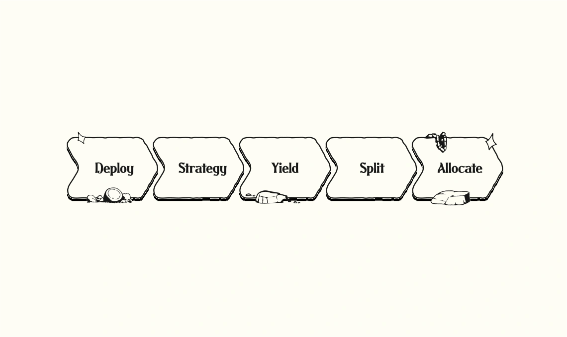 资助金库是智能合约,它们将资产部署到 DeFi 策略中以产生收益,并自动将该收益导向资助用途。存入的资本保持不变,只有回报按照预定义规则进行分配。金库处理策略选择、收益收集和分配,允许资产在不减少底层余额的情况下产生持续的资金流。